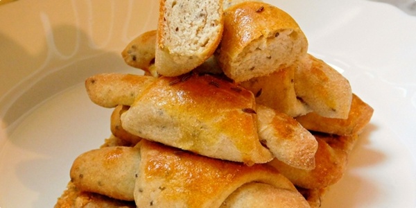 U sva tri brašna prvo umješajte suhi kvasac , chia sjemenke predhodno namočene u malo vode ( oko pola dcl ...neka stoje 10 minuta ) , zatim jedno jaje , rastopljeni putar ili margarin , vodu i malo soli . Umjesite glatko i meko tijesto , ako je premekano dodajte još malo glatkog brašna .Tijesto pokrijte krpom ili poklopcem i ostavite na toplom da se diže oko sat vremena . Dignuto tijesto premjesite i napravite šest jednakih kuglica . svaku razvaljajte, premažite uljem i podijelite u osam trokuta .